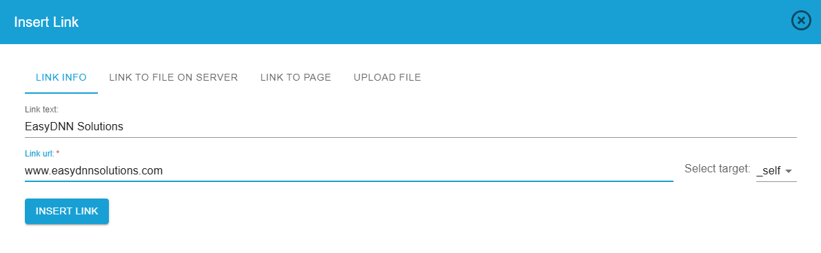 The Link Manager in the HTML editor makes it easy to add links to your text. Simply highlight the text you want to link, click the Link Manager icon in the HTML editor, and then you can add a web URL, choose a file on the server, select a page within your DNN website, or upload a file to the server.