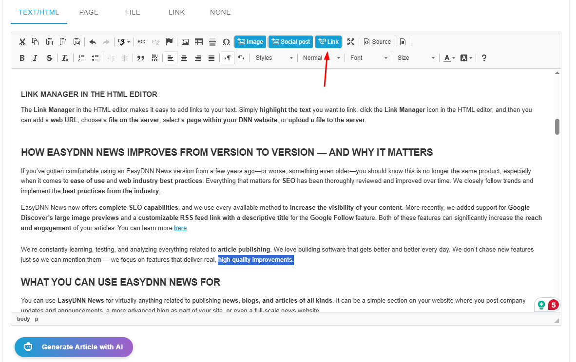 EasyDNN News 14.5 – AI SEO manager & Link Manager