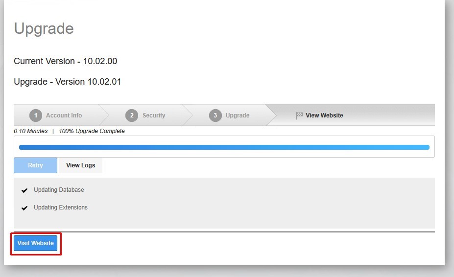 After a few minutes, the upgrade process will complete successfully.