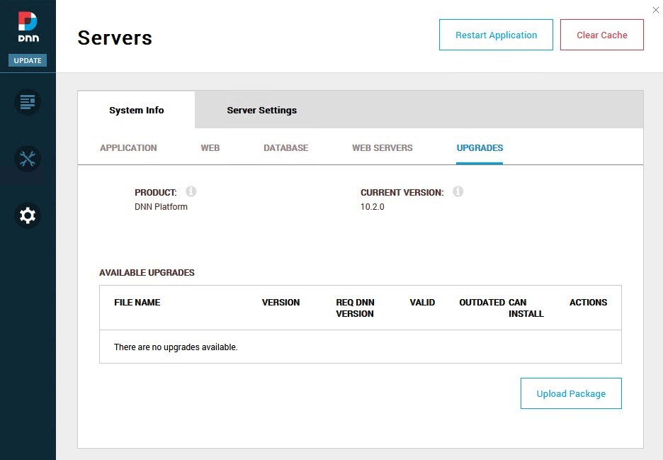 Thanks to the new in-app upgrade option, there’s no longer any need to manually unzip the DNN upgrade package and overwrite existing site files via FTP or a control panel File Manager. Now you simply upload the upgrade package in the new Upgrade interface and then start the upgrade process.